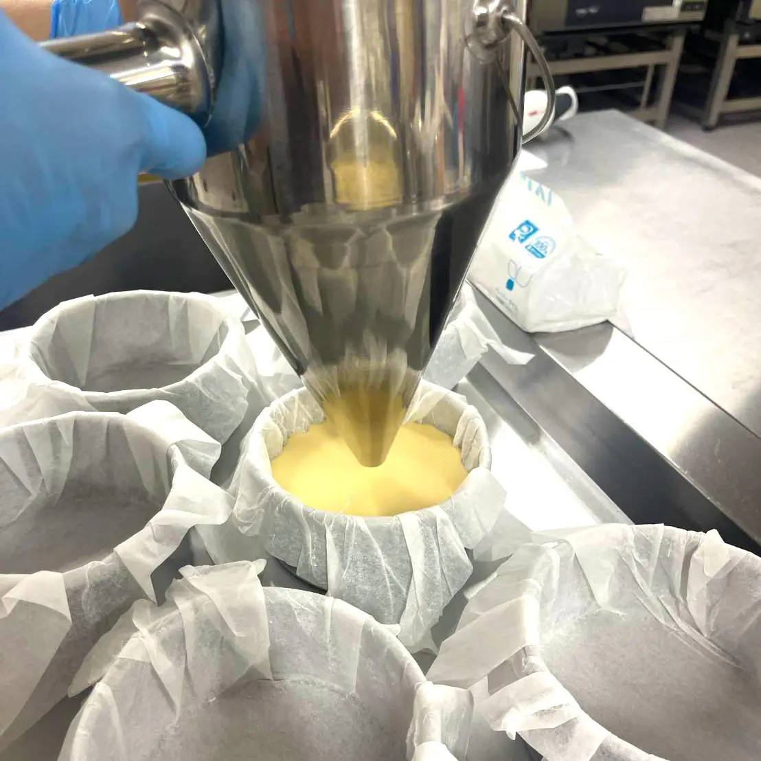 自社工房にてパティシエが、原料の調合・攪拌から充填・焼成まで一つ一つ丁寧に手作りしています。