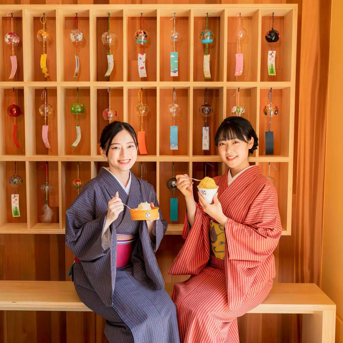 江戸情緒たっぷりの川越を散策されるお客様に、より楽しんでいただき、良き想い出を残していただくために、店舗の佇まいや店内の雰囲気にもこだわりました。 店内のフォトスポットや風鈴のディスプレイも是非お楽しみください。